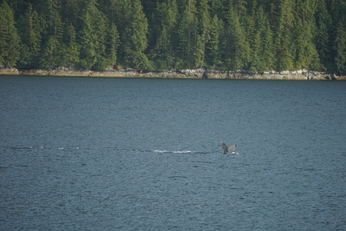 De kapitein houdt ons op de hoogte van de bijzonderheden in de omgeving. Na drie uur zwemt er een walvis dicht bij de boot. Hij laat zijn staart sierlijk boven het water uitsteken terwijl Jasper hem vereeuwigd op foto. Check…we kunnen weer een dier afstrepen van onze wilde dieren bucketlist. De bever en de beer laten we nog even staan. Hopelijk kunnen we die voor het einde van de reis nog afstrepen.