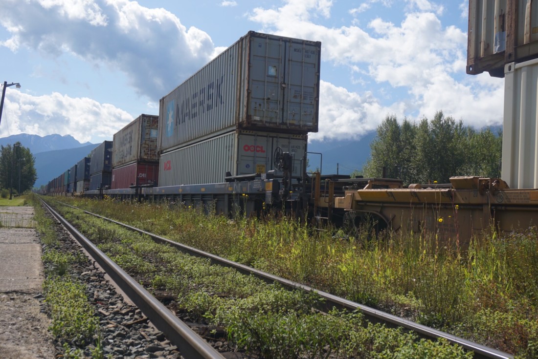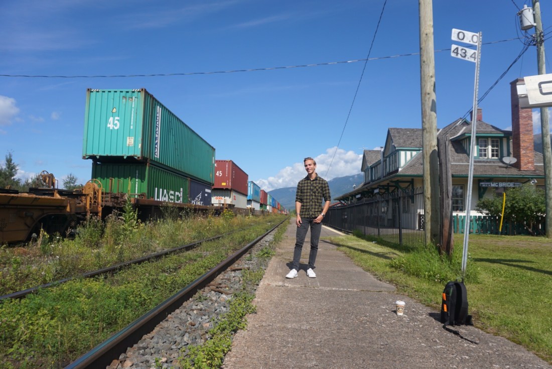 In Mc Bride nemen we op het “station” een kop koffie en plaspauze. Er staat een goederentrein te wachten die lang is! Ongekend wat een lengte….na 3 km pas de staart in zicht.